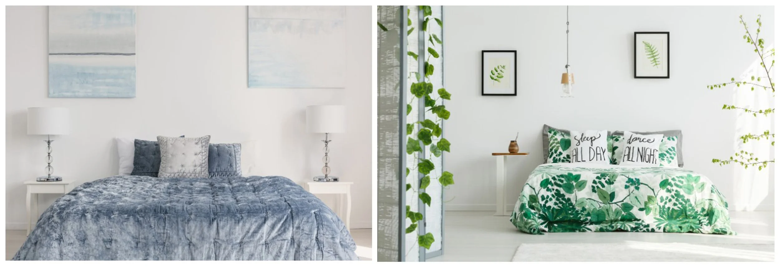 Patterned bedding adds character to the room. Add texture in cushions, blankets and rugs etc. Knitted cushions, woollen throws and thick rugs add texture and depth to an all-white decor. A large woven area rug contributes texture and warmth underfoot.
