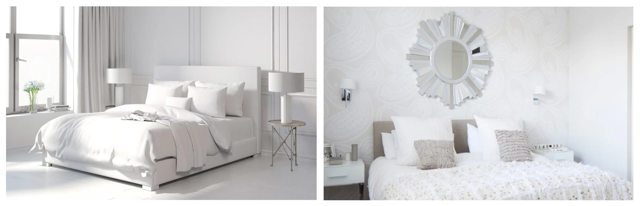 To make the white stand out even more, add one single spot of contrasting color to your white bedroom.